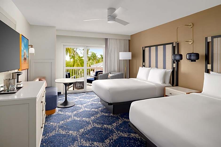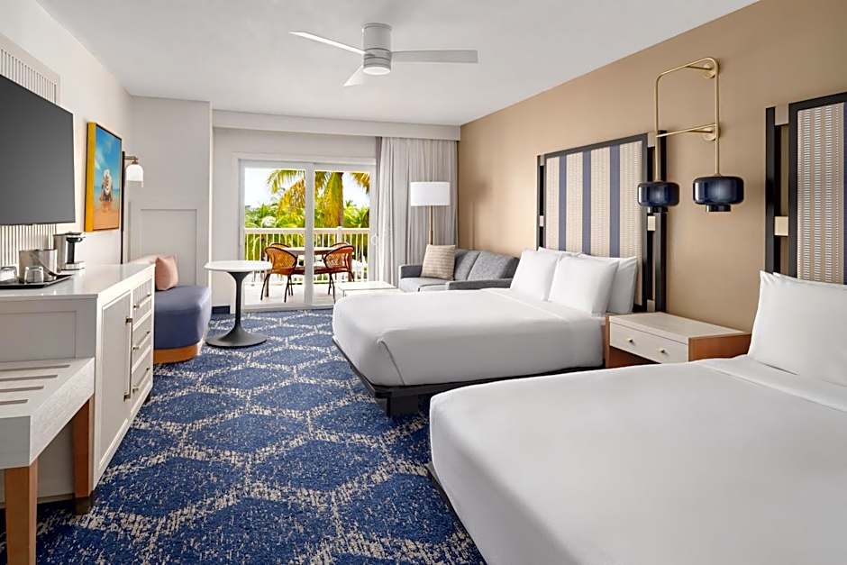 This room features a flat-screen TV with cable channels, refrigerator, and coffee maker. A pool view is offered.
