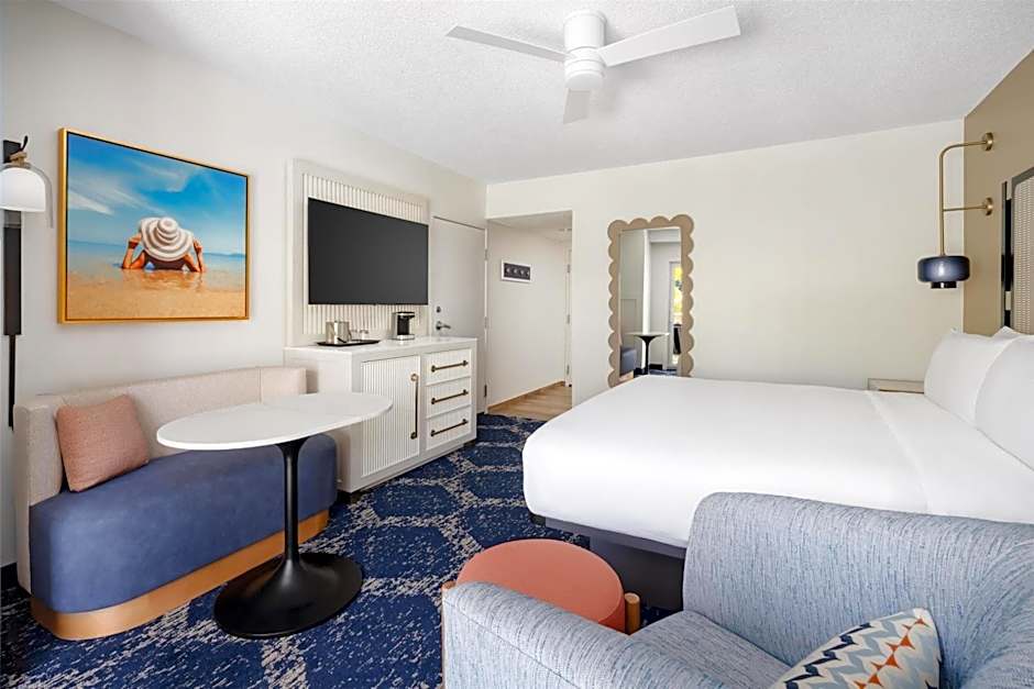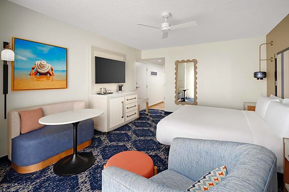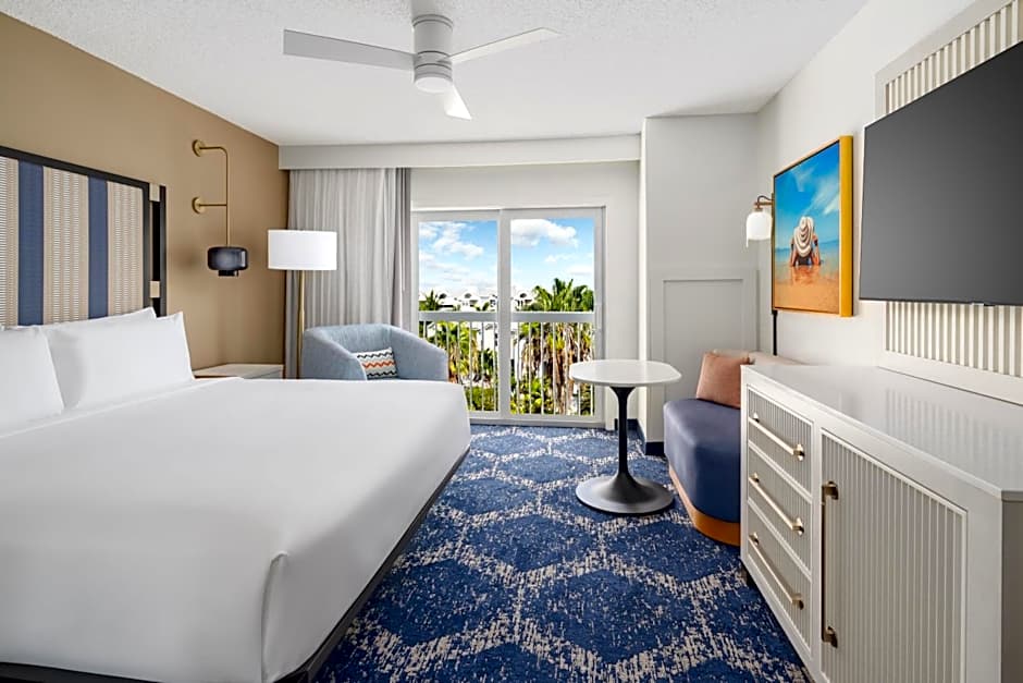 This accessible room features a flat-screen TV with cable channels, refrigerator, and coffee maker. A pool view is offered.